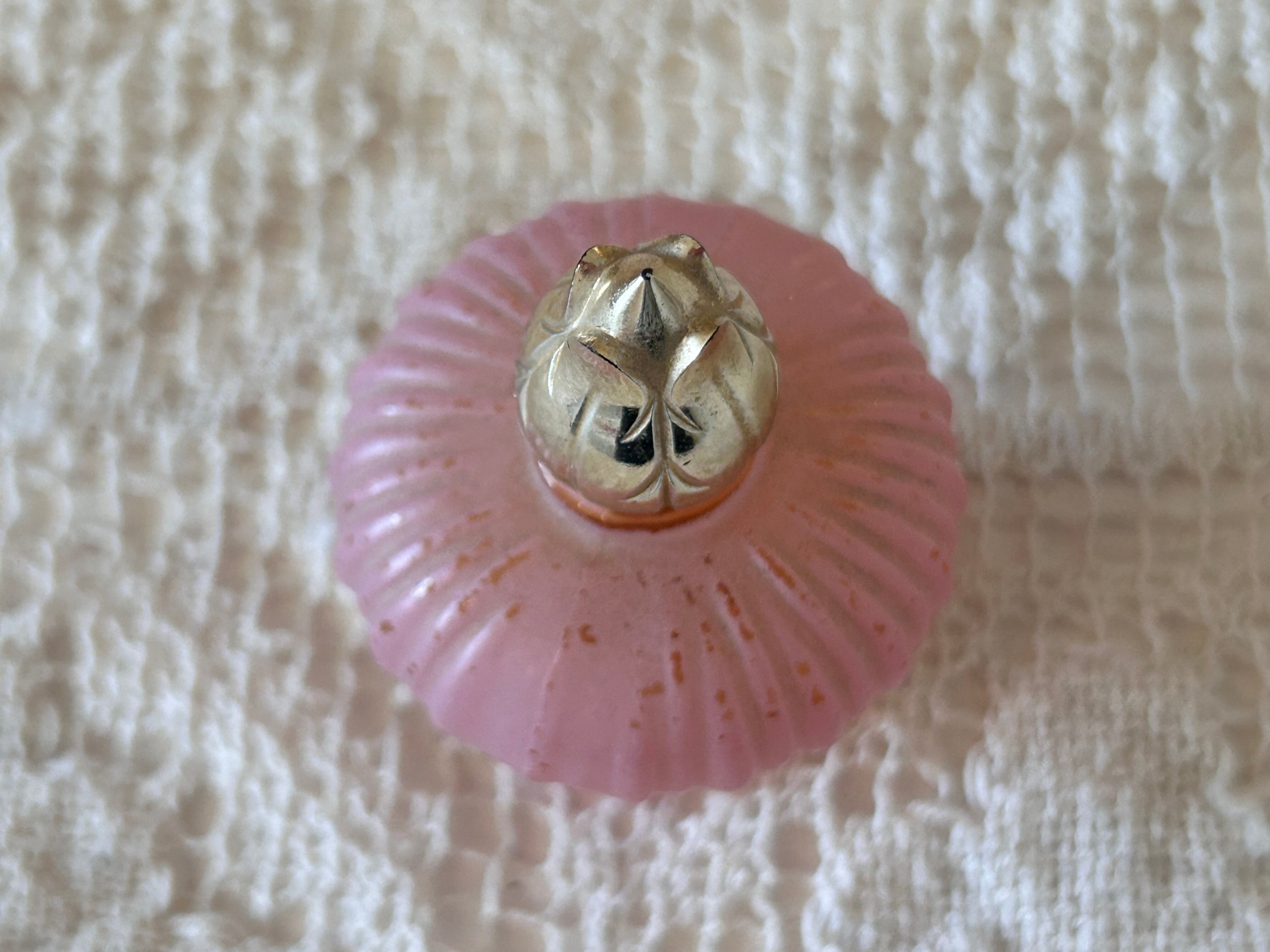 小さな香水瓶は、ピンクの塗装にハゲがございます。淡いピンクのカラーが、ドレッサーを華やかにしてくれそうです。