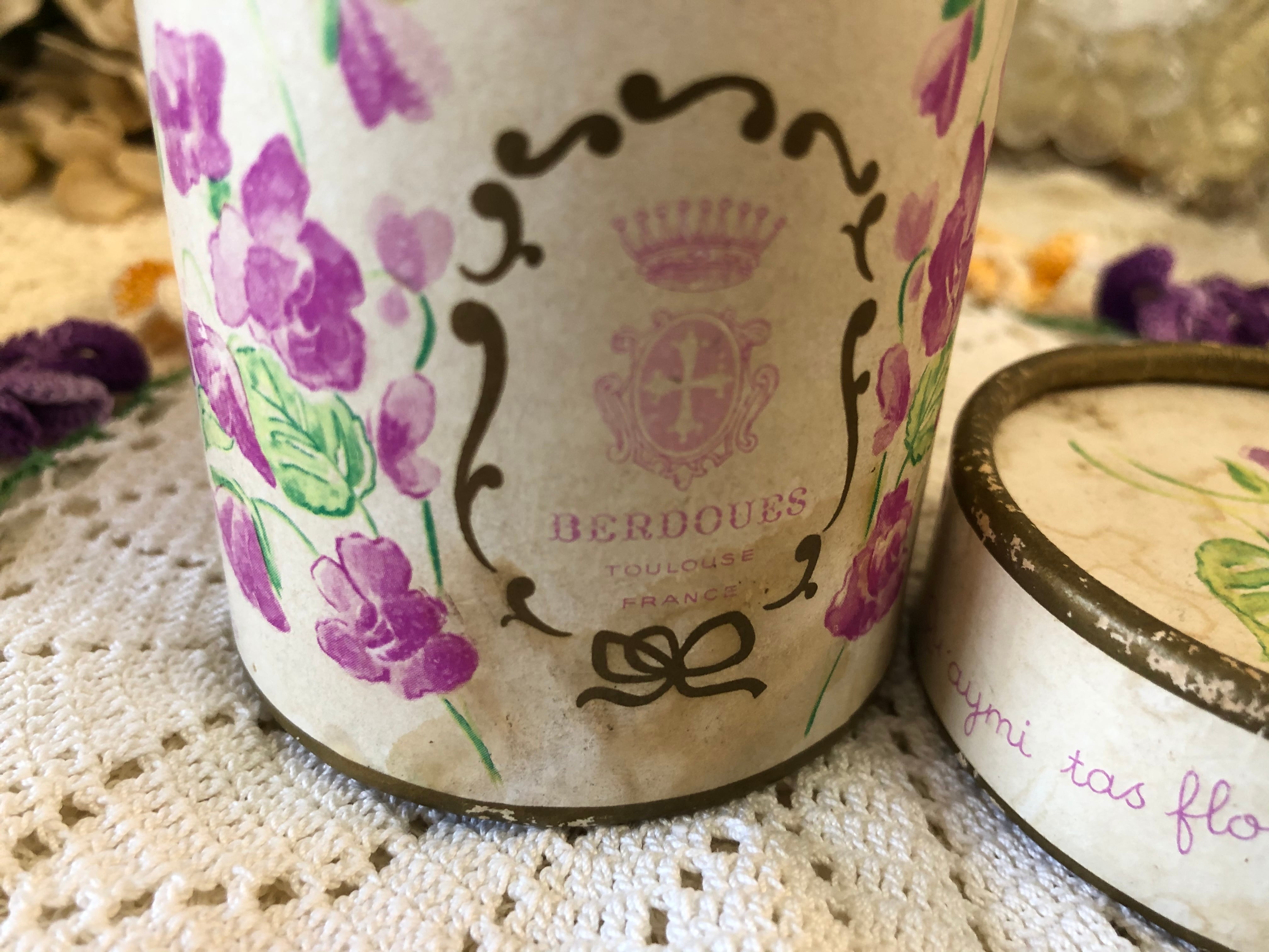 ベルドゥ社のViolettes de Toulouseスミレの香水ボックスのみです。香水瓶はありません。シミが箱手前、蓋にあり、全体的に多少の経年劣化が見られます。